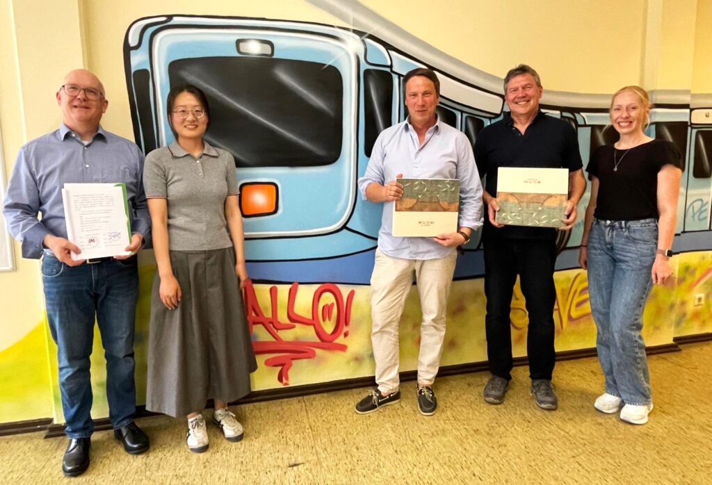 Der römische Staatsmann Cicero lehrt: Wer die Freundschaft aus dem Leben verbannt, entfernt aus der Welt die Sonne. Lernen, Lehren und Freundschaft verbinden das BKWB seit 13 Jahren mit unserer chinesischen Partnerschule. Das BKWB begrüßt nun herzlich Zhang Li, Vertreterin der Deutsch-Chinesischen Berufsschule Qingdao. Das neue Schulleiterteam, Christian Rehse und Christian Bruelheide, verlängern den bestehenden Kooperationsvertrag mit unserer chinesischen Partnerschule und setzen damit ein Zeichen der Freundschaft, der Kontinuität und des gegenseitigen Vertrauens. Auch in den kommenden Jahren werden wieder viele angehende Techniker nach Qingdao reisen und dort Erfahrungen austauschen und immer wieder persönlich neue Kontakte und Freundschaften knüpfen können. Gegenwärtig wird eingehend über eine Intensivierung der Kooperation durch Ausbau der Programme gesprochen.